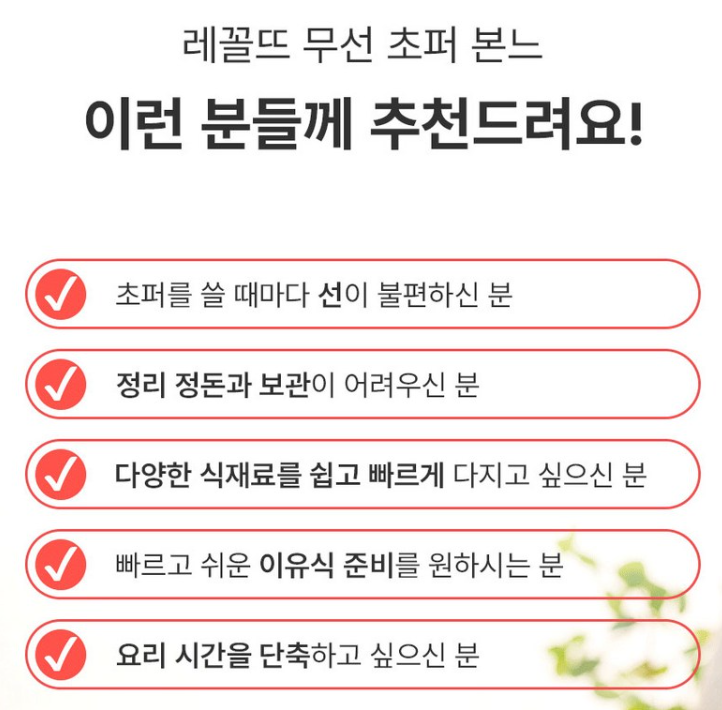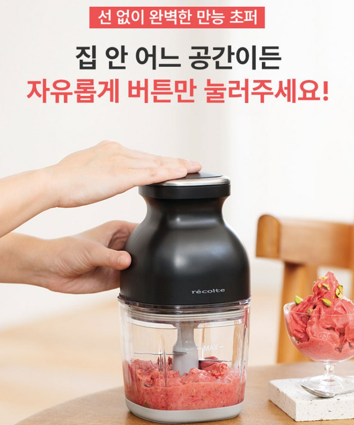 레꼴뜨 무선 커터 본느는 부엌에서 자주 다지는 재료들을 빠르고 간편하게 준비할 수 있게 도와주는 스마트한 도우미입니다. 마늘, 야채, 견과류 등 다양한 재료를 빠르게 다져야 할 일이 많은 분들께 진심으로 추천드립니다!