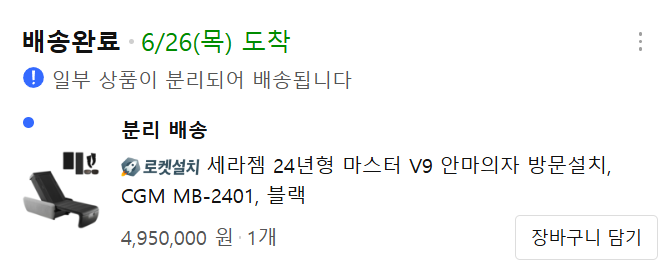 - 배송이 한 번에 오지 않고, 분리 배송되는 부분 (부품이 별도 배송됨)